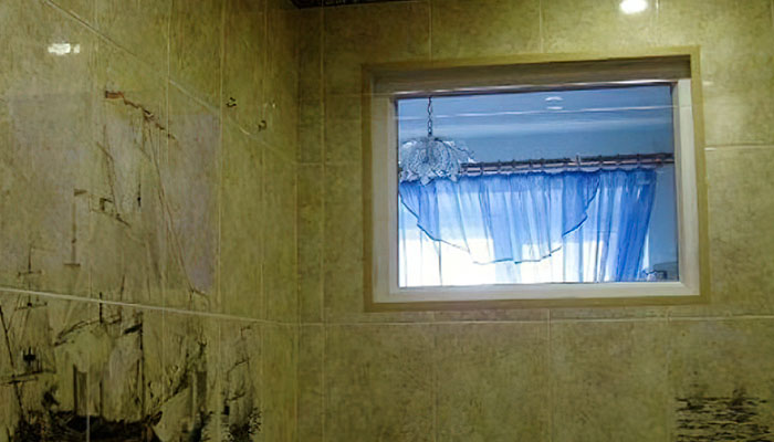 Некоторые хозяева окна меняют на пластиковые с затемненным или «мутным» стеклом, применяя поворотный механизм с ручкой. Жарким летом, после приёма душа, проветрить комнату не составит труда.