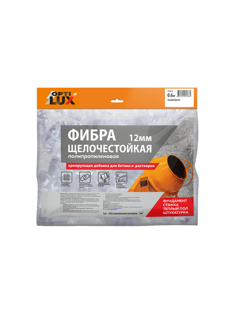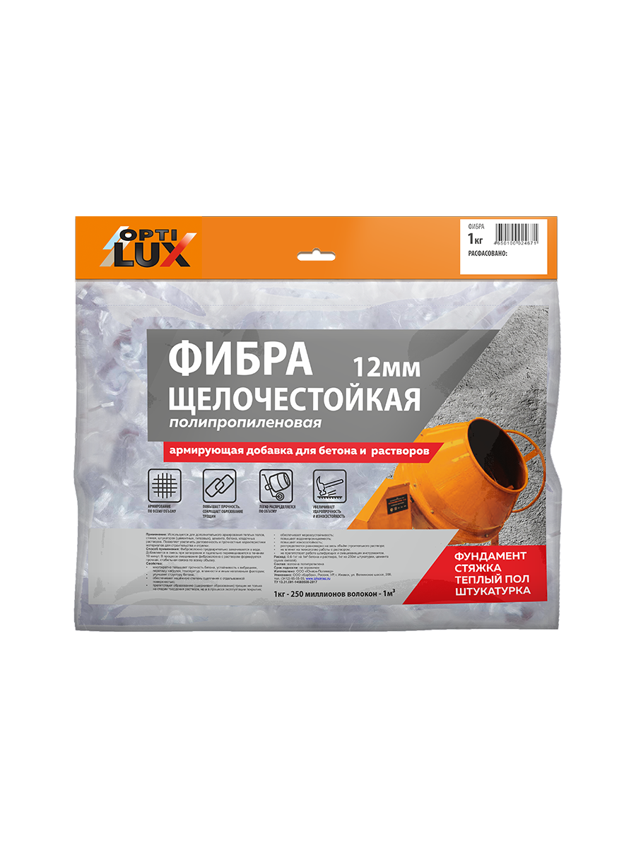 Фибра OPTILUX (ОПТИЛЮКС) 12мм (полипропиленовая, щелочестойкая)