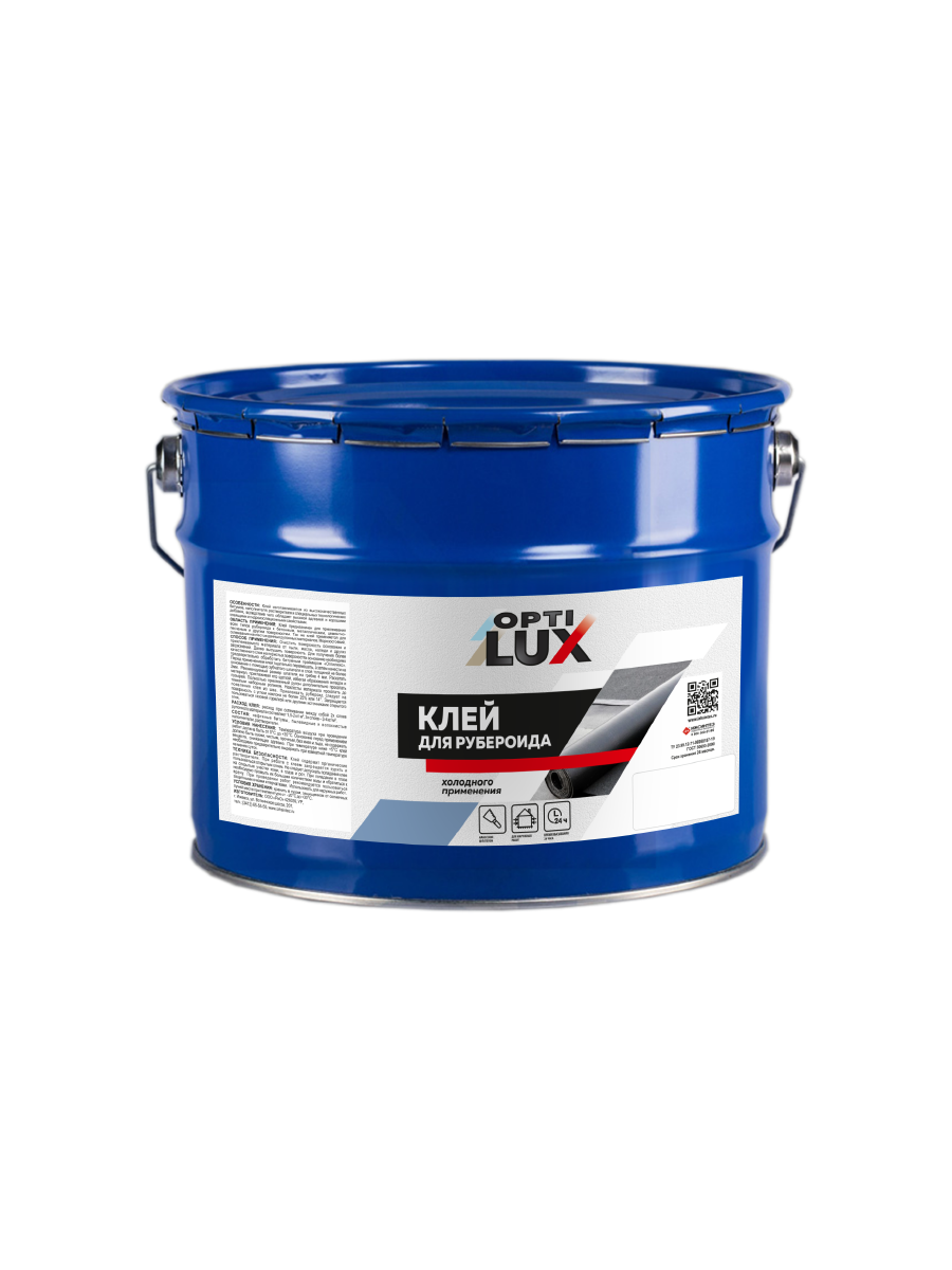 СПОСОБ ПРИМЕНЕНИЯ: Очистить поверхность основания и приклеиваемого материала от пыли, масла, наледи и других загрязнений. Далее высушить поверхность. Для получения более качественного слоя на пористых поверхностях основание необходимо предварительно обработать битумным праймером «Оптилюкс». Перед применением клей тщательно перемешать, а затем нанести на основание с помощью зубчатого шпателя в слой толщиной не более 2мм. Рекомендуемый размер шпателя на гребке 4 мм. Раскатать материал, приглаживая его щеткой, избегая образования складок и пузырей. Полностью приклеенный рулон дополнительно прокатать тяжелым наборным роликом. Нахлесты материала прокатать до появления клея из шва. Приклеивать рубероид следует на поверхность с углом наклона не более 25% или 14°. Запрещается пользоваться газовой горелкой или другими источниками открытого огня.