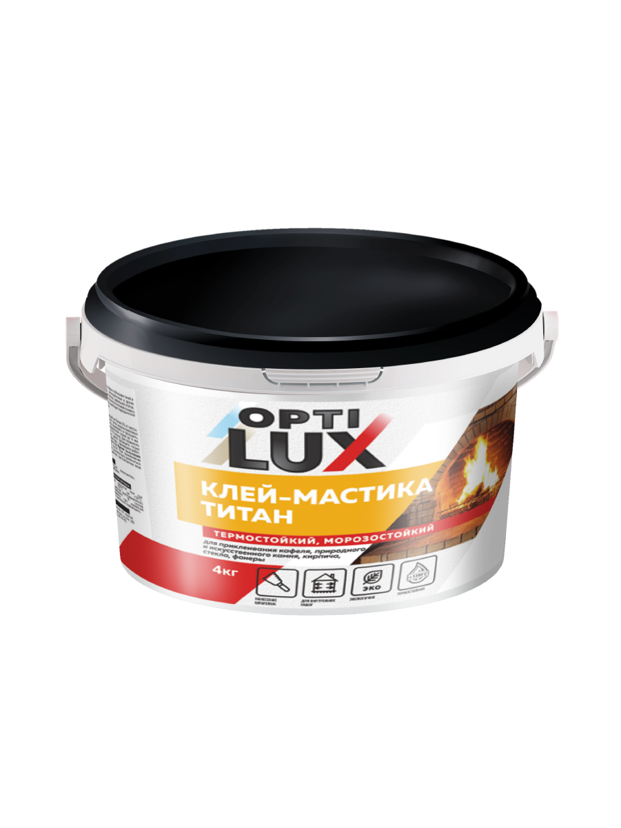 ПРИМЕНЕНИЕ: мастику перед применением перемешать, при необходимости разбавить водой не более 5% от массы. Работы проводить при температуре не ниже +5°С. Основание очистить от пыли, грязи, жиров и масляных пятен. Осыпающиеся и непрочные участки поверхности удалить, поверхность выровнять и просушить. Мастика наносится зубчатым шпателем на одну из склеиваемых поверхностей слоем до 4 мм. Приклеивание плитки, камня: плитку с нанесенной мастикой прижать на 5-10 секунд. Для надежного сцепления с поверхностью загрунтовать бетоконтактом «OptiLux». Затирку швов проводить только после полного высыхания мастики. Время высыхания зависит от температуры проведения работ, толщины шва, впитывающей способности и площади склеиваемых поверхностей. Время высыхания для элементов размером 30*30 см при 200℃, влажности 65% составляет 5 суток. При приклеивании элементов размером более 30*30 см время высыхания клеевого шва может значительно увеличиться. Печи и камины ремонтировать и облицовывать плиткой необходимо в горячем, протопленном виде. Инструмент и пятна отмыть водой сразу после окончания работ.