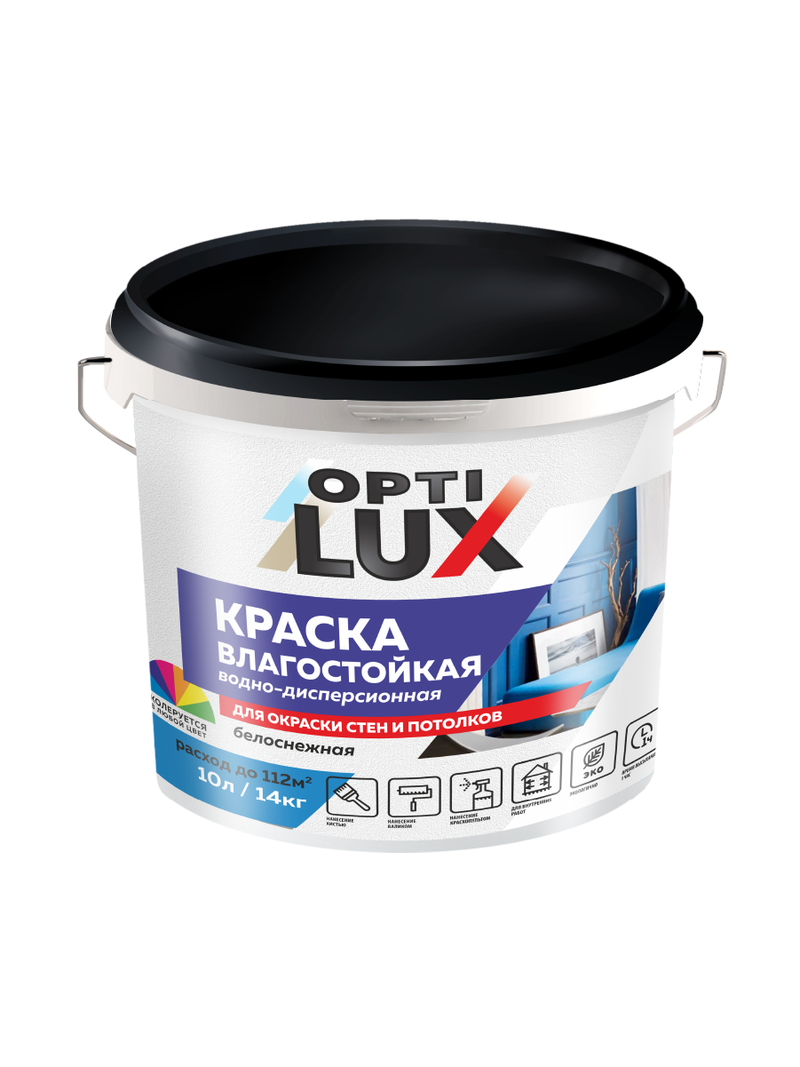 ПРИМЕНЕНИЕ: перед окраской основание должно быть чистым, сухим и прочным (очищенным от отслаивающейся краски, побелки, пыли, жиров, смазочных масел и т.п.). Твердые глянцевые поверхности необходимо отшлифовать до матового состояния, пыль удалить. Загрунтовать поверхность. Для получения максимальной адгезии рекомендуется использовать акрилатную грунтовку «OptiLux для внутренних работ» в сухих помещениях и «OptiLux для наружных и внутренних работ» в помещениях с повышенной влажностью. Перед применением краску тщательно перемешать. Наносить кистью, валиком или краскораспылителем. Допускается разбавление водой не более чем на 5% по массе. В зависимости от качества отделки наносят от 1 до 2 слоев после полного высыхания предыдущего слоя. Время высыхания при температуре +20°C и относительной влажности 70% — 1 час. Последний слой рекомендуется наносить не разбавленной краской. Не наносить при температуре ниже +5°C. Инструмент и пятна отмыть водой сразу после окончания работ.