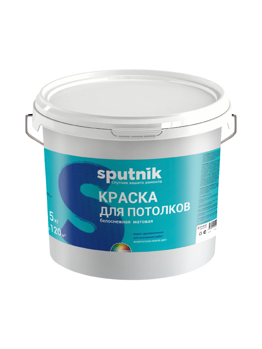 ВД краска СПУТНИК для потолков белоснежная
